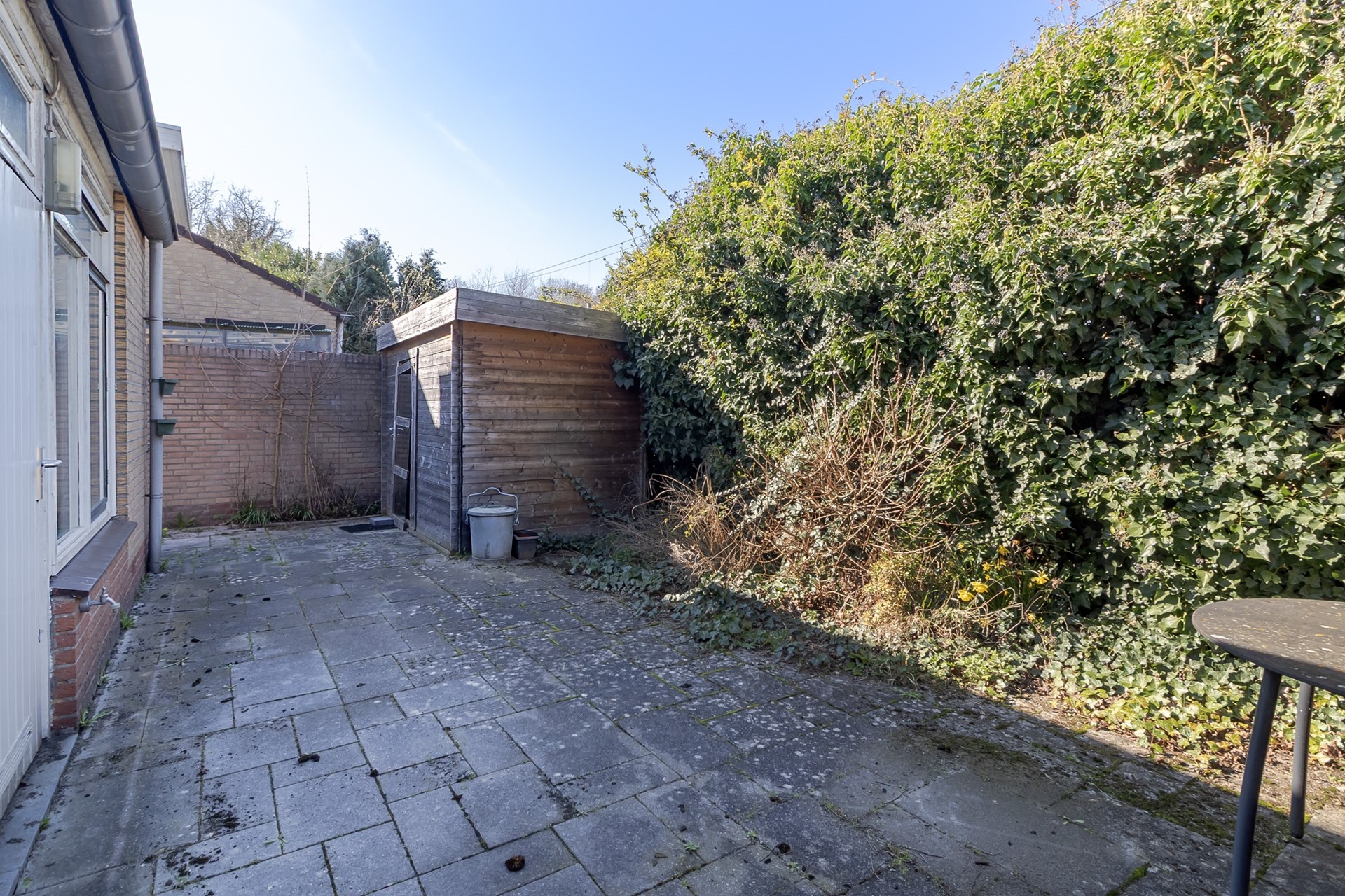 • De achtertuin is gesitueerd op het noorden. De tuin is geheel beklinkerd en v.v. een tuinhuis. Er is een achterom aan de zijkant van de woning.