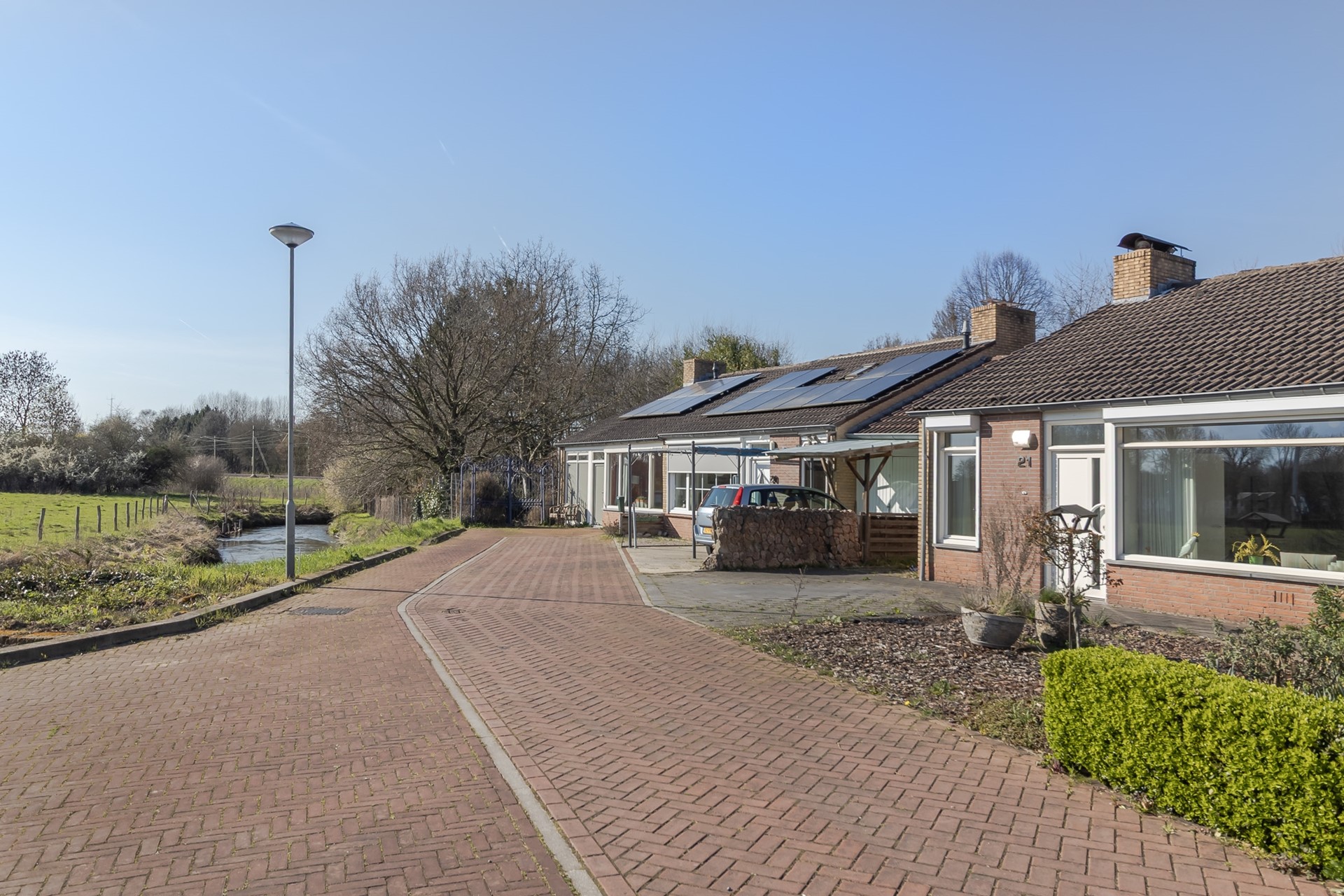 • De voortuin is gesitueerd op het zuiden: een heerlijke plek om te genieten van de zon en het vrije uitzicht op de Geul en de weilanden aan de overzijde. De beklinkerde oprit biedt plek voor het parkeren van één auto op eigen terrein. Een achterom aan de zijkant van de woning geeft toegang tot de achtertuin.